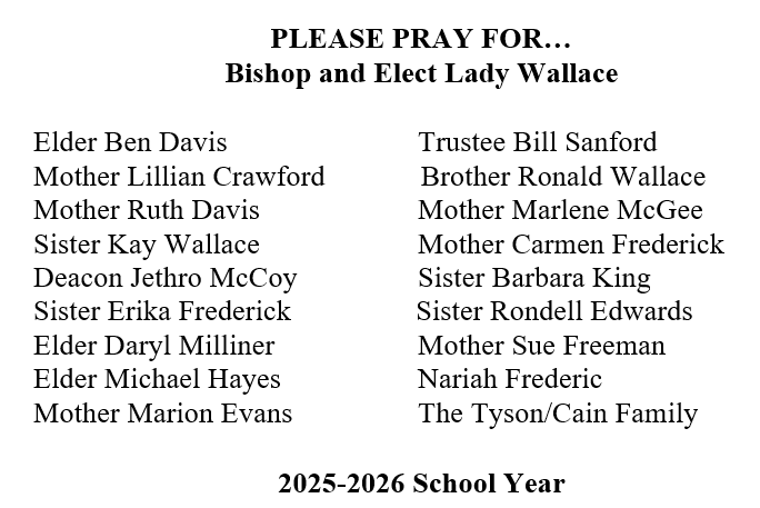 HOLY CONVOCATION….please pray for our Pastor, Bishop Wallace, and all those attending the Holy Convocation in Memphis this week.